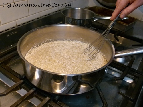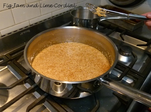 Oh dear, we had a disaster. As soon as we put the sesame seeds in, the sugar totally crystalised and went solid. I now have a pan of sugared sesame seeds
