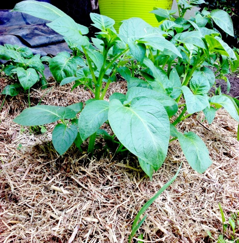 Jo, in our last two beds, we planted potatoes in the back of the beds rather than chook feed. I hope the girls are ok with that.. :)