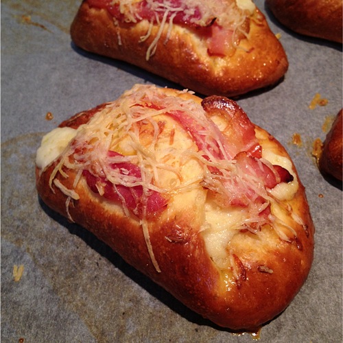 I baked savoury slices for lunch, using leftover bacon and Grana Padano cheese…