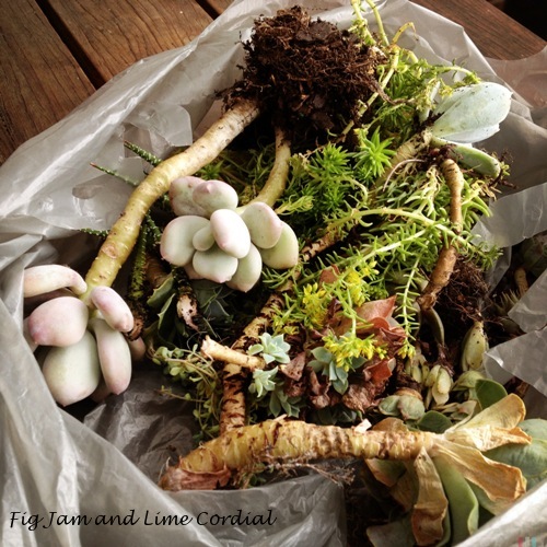 Nic’s advice was to buy the best potting mix we could find, and to avoid “succulent blends”, which she found too sandy. Some of the little plants had no roots at all, so I’ll be interested to see if they take…