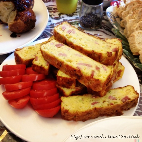 I made a zucchini slice, using our Lebanese zucchinis, leg ham, eggs, onion and King Island cheese. It’s a really easy recipe to have on hand for this busy time of year, and it never fails to please…