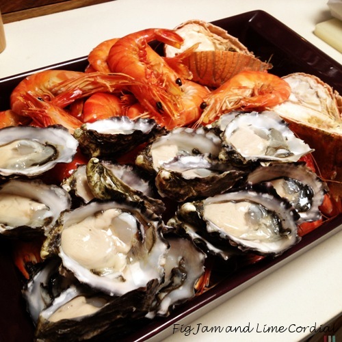 On Saturday morning, Penny, Ray and I took an early morning trip to the Sydney Fish Market. We came home with Pacific oysters, scallops on their shells, calamari rings, prawns, Moreton Bay bugs and rainbow trout.