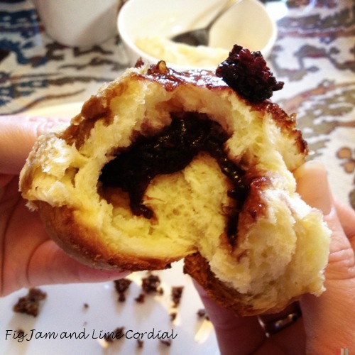 Each ball of dough was filled with Pete’s rhubarb and blackberry jam…