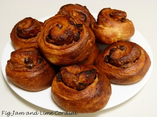 The scrolls weren’t overly gooey, but they were delicious – my darling husband ate one when no-one was looking, and then walked into the room with incriminating chocolate smeared all over his face…