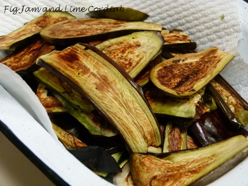 I used two-thirds of the grilled eggplant slices for dinner, and froze the remainder for another day…