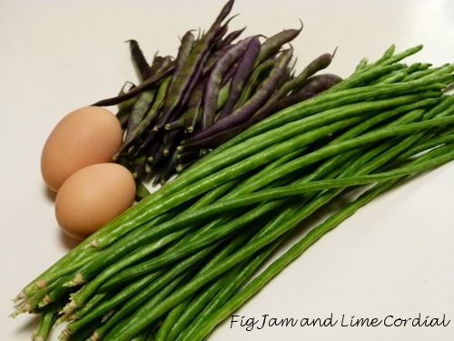 I am so impressed with your home grown snake beans and eggplant. A friend of mine grows prolific snake beans up in Queensland. I didn’t think they would grow so well here in Sydney. Maybe I should try planting some in my weed patch. I like the sound of a snake bean omelet too – must try that next time I buy some.I bought a bunch the other day that were so fresh and tender they were such a joy. I can imagine that home grown would be even better.