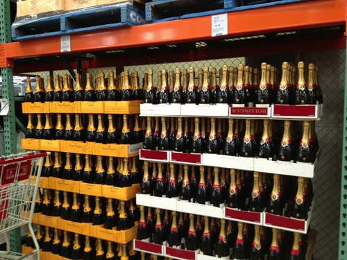 The wine department at Costco is small but impressive. There were very reasonably priced Champagnes, including their Kirklands house label, made for them by Dom Perignon, no less (and selling for around $30/bottle)…