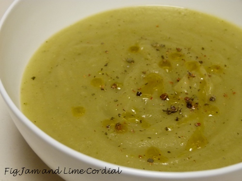 All the vegetables were fried in a little olive oil until just starting to brown before adding the chicken stock. The pot was brought to a boil, and then simmered, covered, until the vegetables were soft. Then it was simply a case of blitzing the entire mixture until smooth (I used a handheld stick blender), and seasoning to taste.