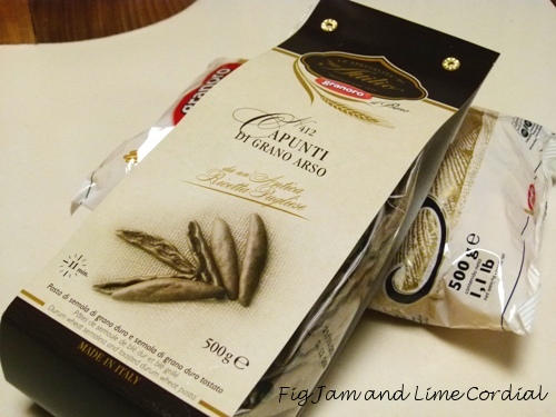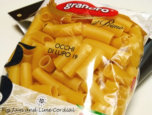 …is my favourite pasta. I always insist that we buy this instead of the bulk packs of penne (same brand and much cheaper), which drives Pete a bit mad. But how does one resist a pasta called “Eyes of the Wolf”?