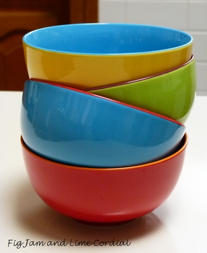 Liz, the capsicum sounds divine – did you grow it? It’s one of the things that we have great trouble growing in our backyard! The Mikasa bowls are brightening up our kitchen no end! :)
