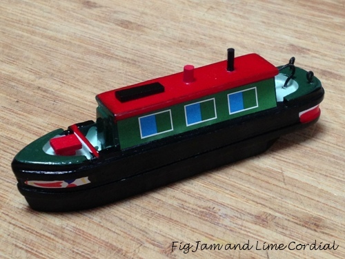 …a little narrowboat has sailed all the way across the seas to take up pride of place on my spice shelf. My dear friend Peter Bryenton is a UK-based photographer who takes the occasional shot of a narrowboat for Small Man. Peter popped this little wooden treasure into the mail for us…