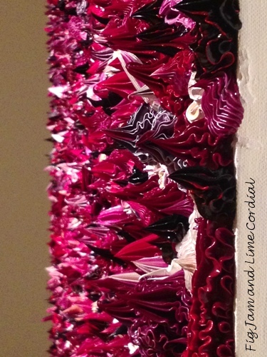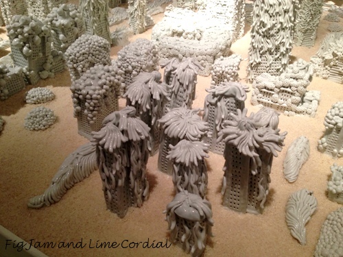 It made me want to rush home and bake raspberry meringues. According to the artist, the patterns reminded him of “cityscapes seen from space” – I saw similarities to coral reefs and from a distance, it looked like a large collection of swirly party ribbons…