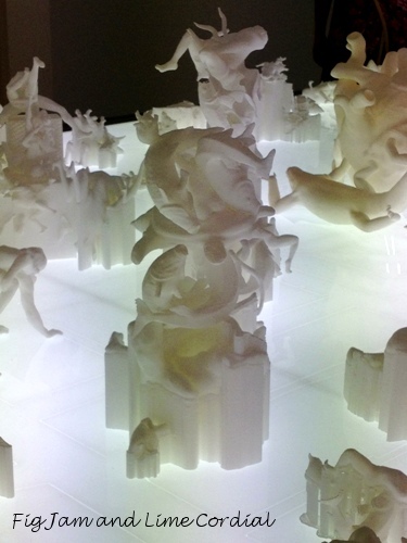 All the pieces for Wonderful City (2011) by Cheng Dapeng were created using a 3D resin printer. The light box presentation made it difficult to photograph them, but they were surprisingly detailed…