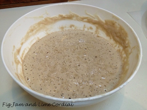 I made my starter using Dan Lepard’s recipe; yoghurt, raisins and apple juice……it started bubbling away with breakneck speed.