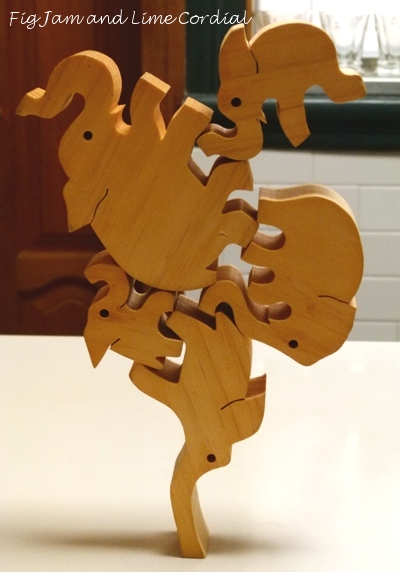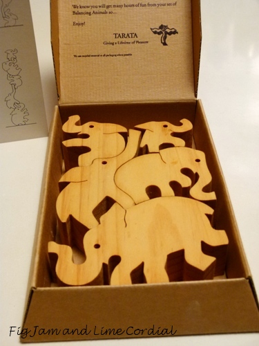 As it was Beej’s birthday, we gave her a set of Tarata Balancing Elephants. These New Zealand wood puzzles are some of our favourite and most enduring toys. We bought four sets back in 2005, and they’ve been played with regularly ever since…