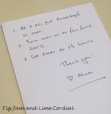 So delicious indeed Celia, and I bet you could smell it as soon as you pulled up in the driveway! How lovely to walk in the door to such a great dinner ready to go, and good job Small Man for remembering to put it on in time! Xox