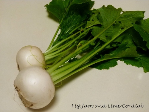 We also added our first ever turnips, grown from a punnet of seedlings that we bought on spec. The turnips are nice, but the leaves are absolutely delicious…