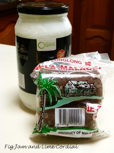 We started with organic extra virgin coconut oil and gula melaka (palm sugar)…