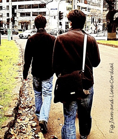 All I know is that I find taking photos of the two of them striding off together quite irresistible – their family resemblance, already so strong in their build and facial features, becomes even more pronounced in their gait and posture. Their camaraderie and deep affection are always evident, but never more so than when they’re loping off purposefully together, often chatting, but sometimes just walking in step with one another.
