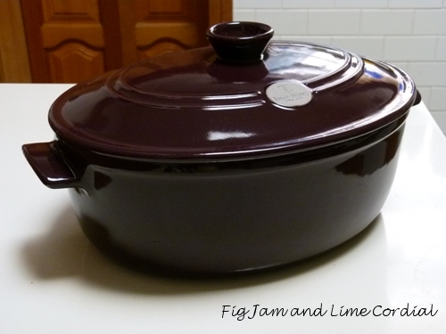 John’s recipe takes quite a bit of prep time, which I suddenly didn’t have. So instead, I dragged out my ginormous Emile Henry Flame pot…