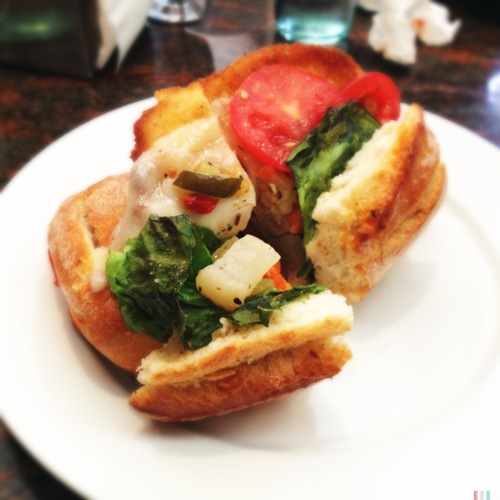 And I went out to lunch! Terri and I shared a chicken schnitzel and gardiniera roll…