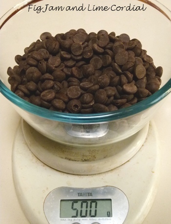 Step 1: Pour 500g of dark chocolate callets into a pyrex bowl.