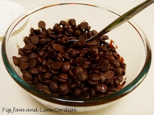 Step 4: Drop in the lump of dark chocolate, and give it all a good stir. Set the timer for 10 minutes (or 5 minutes if your kitchen is really cold), and go do something – get a cup of tea, or check your emails – just make sure you can hear the timer when it goes off…