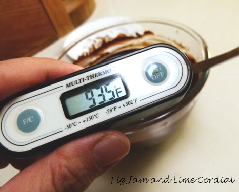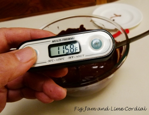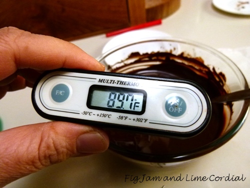 My apologies for working in imperial measures, but it was how I learnt to temper years ago, and the numbers are now lodged into my brain. Most digital thermometers will let you switch from imperial to metric at the push of a button…