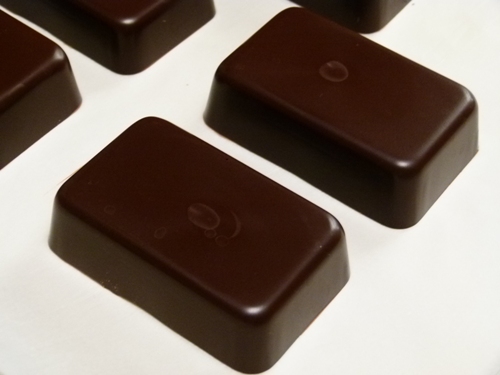 They work brilliantly, although with silicone, you have to push the finished chocolate out rather than simply banging the inverted tray on the bench. This experimental batch was made with the Callebaut 80% Kumabo that I bought at Chefs’ Warehouse last month – don’t let the cuteness fool you, they were a very grown-up treat!
