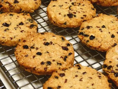 Pete thought I should point out that these are quite a “grown up” treat. They don’t have a lot of added sugar, and the cacao nibs and dark chocolate add a hint of bitterness which little people are unlikely to find appealing. As a muesli fan, Pete likes these a lot, and he finds them very satisfying without being overly heavy. If you’re a fan of a less sweet (but not necessarily savoury) cookie, then you might like these too!
