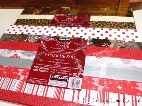 I’ve been getting ready for Christmas, and was delighted to discover these gorgeous packets of tissue paper at Costco, for just $8 per 160 sheets…