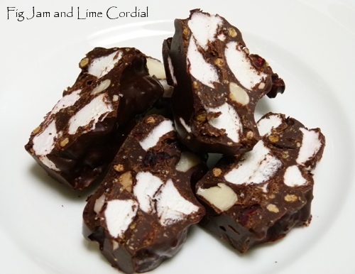 Christmas rocky road, filled with cranberries, marshmallows, macadamia nuts and Crispearls. I’m hoping to get a chance to temper more chocolate in the coming week…