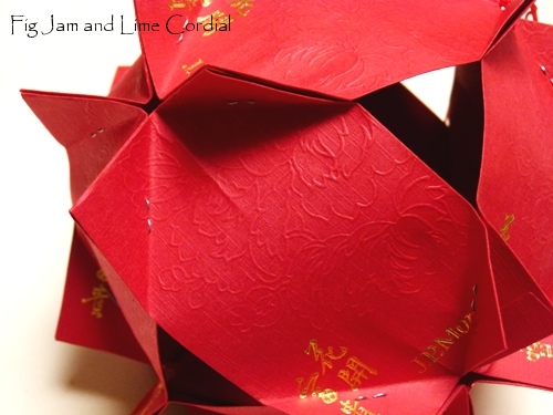 Heidi, our lovely friend Peter Bryenton made the most wonderful lamp shade cover following this pattern – I think he used cardboard. From memory, you said you used origami paper last time, but that’s too thin – the red envelopes are quite sturdy. Red cardboard or coloured (mailing) envelopes would work better!