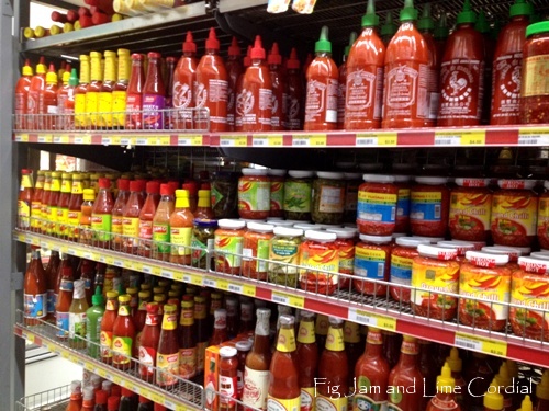 An aisle full of hot sauces, including our favourite Lingham’s, a Malaysian product which can be hard to buy elsewhere…