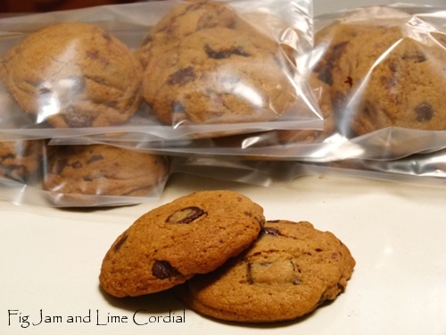 Lynda’s present began with twenty of her favourite chocolate chip cookies. I’ve packaged them in sealed bags of five, so that she doesn’t have to eat them all at once…