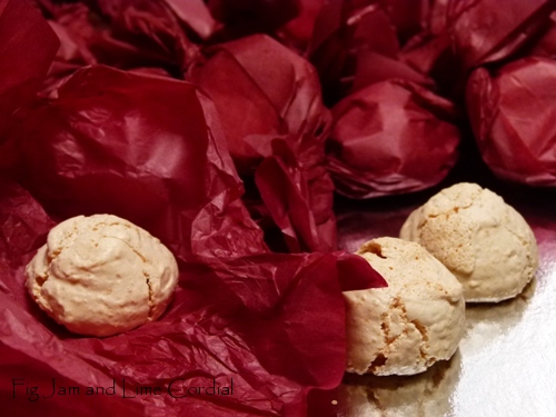 Inspired by a photo in Alice Medrich’s book, I individually wrapped twenty of my amaretti cookies in tissue paper, then packed them in two bags of ten…
