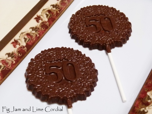 There has to be chocolate of course, including the birthday card in the top photo, and six chocolate lollipops. They’re all made with a dark/milk feuilletine blend…