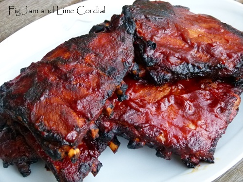 I removed the ribs from the pot and spooned over our barbeque sauce marinade:
