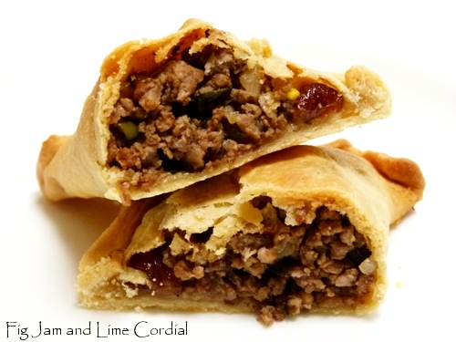 The original recipe uses shortcrust pastry – but I like the flakiness of our version. The filling is fabulous – the meat is slightly sweet, but still savoury, and the green olives and egg seem to balance out the sultanas perfectly…