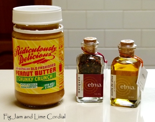 …are birthday treats from Lorraine – locally made peanut butter (seasoned with Murray River salt, no less), and a gift from Chile – olive oil and merquén spice mix. I was particularly thrilled to receive the latter…