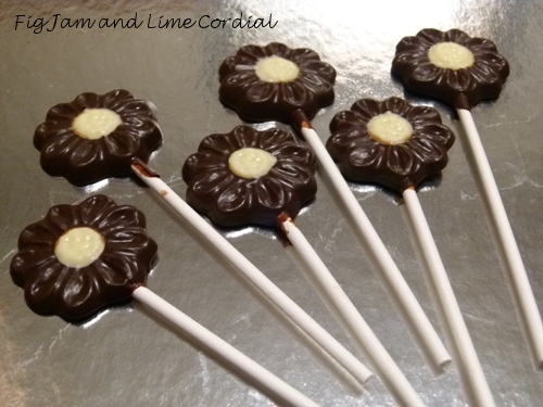 Two-toned lollipops were made by highlighting the design features in white chocolate first, using a small paintbrush…