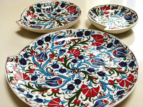 …are new Turkish plates, bought with birthday money from my folks. They’re handpainted in food safe glazes, and we believe the little lip is meant to be a pouring spout. I bought the set from Moya at Turkuaz Motif (their new shop is at 127 Willoughby Road, Crows Nest)…