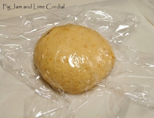 This is quite a sticky dough – you might need to add a bit more flour if it’s too hard to handle. Start by squelching all the ingredients together to form a dough – I included a couple of cloves of peeled roasted garlic and bits of oregano and rosemary leftover from our Easter dinner.