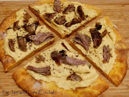 I served these for lunch topped with homemade hommus and the leftover roast lamb…