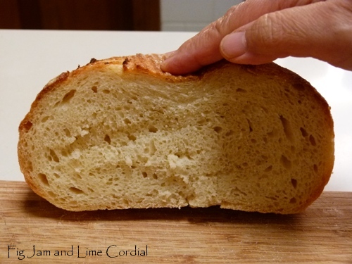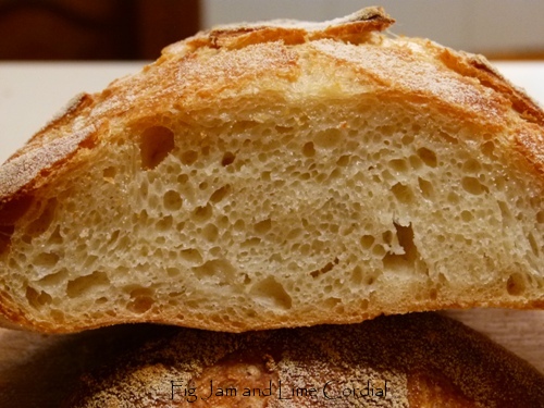 The huge holes are unusual, and I suspect that they’re a result of how my starter Priscilla was behaving on the day (and my dodgy shaping), rather than the baking method.
