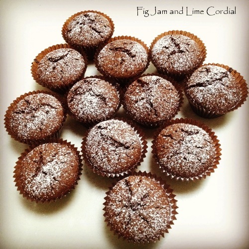 Finally, a treat for Red Roars who’s studying for his HSC trials – little gluten-free chocolate cakes. They’re baked in paper-lined muffin tins and topped with icing sugar…