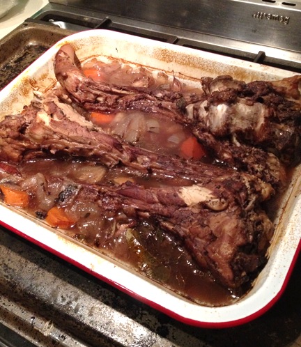 I braised them for three hours in a low oven, then picked off all the meat. Although not overly tender (or attractive), it was very flavoursome…