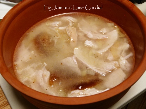 We’ve been spending a bit of time at Labyrinth Aquariums around the corner (the fish tank is undergoing a major overhaul), and I popped in to pick up dinner recently. We came home with one and a half chooks that had literally just come off the pit. As a result, each foil bag had a few tablespoons of juice in it – stock and fat – which was just too good to waste. I poured it out carefully into a bowl and stashed it in the fridge.