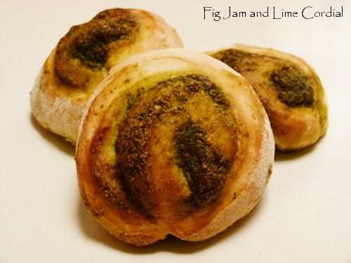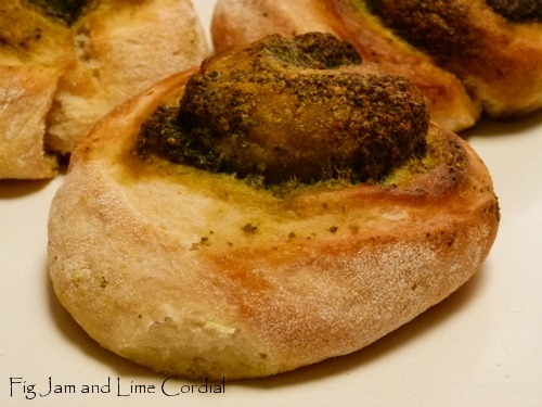 I’ve been baking April Bloomfield inspired scrolls, filled with the last of our broccoli raab. The raw leaves were blitzed with mozzarella cheese, chilli, garlic and a little oil to form a pesto, then spread over sourdough prior to baking…