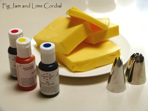 So I decided I needed practice. I spoke to my wonderful friend Dotti who told me to start with a Wilton 1M piping nozzle and buttercream roses. A quick visit to Iced Affair (fabulous shop in Camperdown – Lorraine wrote about them here) and I had two tips (1M and 1F) and some primary gel colours…